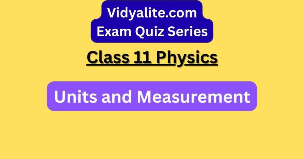 vidyalite.com is a reputable and free academic website where you can access authentic 11th-grade physics multiple-choice questions (MCQs) chapter wise like Units and Measurement Part. Engage in eleventh physics monthly quiz contests to assess your standing at no cost. Achieving high scores on a monthly basis will not only boost your positivity but also qualify you to participate in the Quiz. Take a deep breath, stay positive, and make the most of this opportunity to enhance your academic prowess.