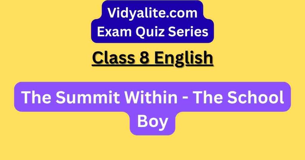 8th English The Summit Within – The School Boy MCQ MCQ Exam Quiz. This is based on NCERT 8th grade English chapter for your CBSE and State board exam.