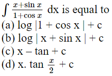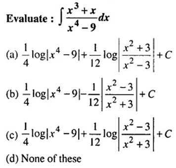Class 12th Math Integrals chapter mcq exam quiz