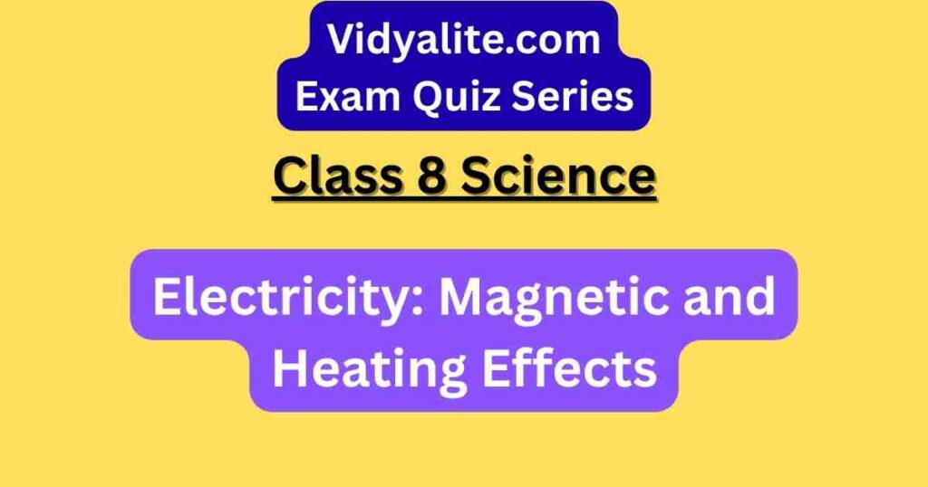 Boost your CBSE exam preparation with our Class 8 Science Chapter 4 – Electricity: Magnetic and Heating Effects MCQ Test. This free quiz is designed from NCERT textbooks, aligned with the CBSE syllabus, and supported by educational videos and Vidyalite’s Flashcards. It covers core topics like the heating effect of electric current, magnetic effect of current, electromagnets, electric fuses, and practical applications in daily life.