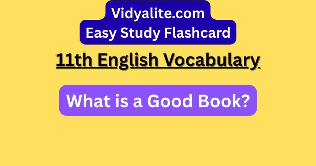 Explore vocabulary from “What is a Good Book?” in Class 11 Woven Words using our English-Hindi flashcards. Learn literary terms and expressions with translations and examples to enhance your understanding of reading philosophy and analysis.