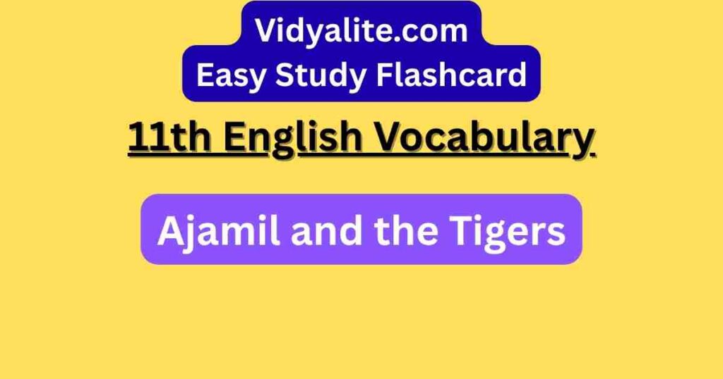 Understand the allegorical poem “Ajamil and the Tigers” from Class 11 Woven Words with vocabulary flashcards featuring Hindi translations. With sentence usage and easy explanations, these flashcards support better literary comprehension and exam confidence.