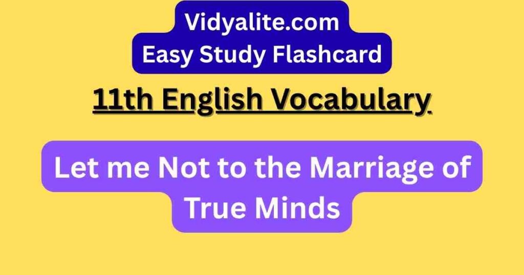 Master Shakespearean language with flashcards from “Let me Not to the Marriage of True Minds” in Class 11 Woven Words. Each word includes Hindi meaning and usage for easier understanding of complex poetic expressions and timeless themes.