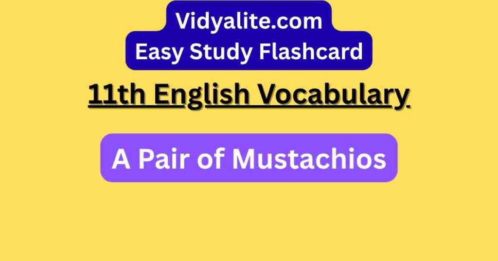 Boost your vocabulary from Class 11 Woven Words “A Pair of Mustachios” using our English-to-Hindi flashcards. These cards include translations and sentence usage to help grasp the humorous and ironic tone of the story, supporting better learning and retention.