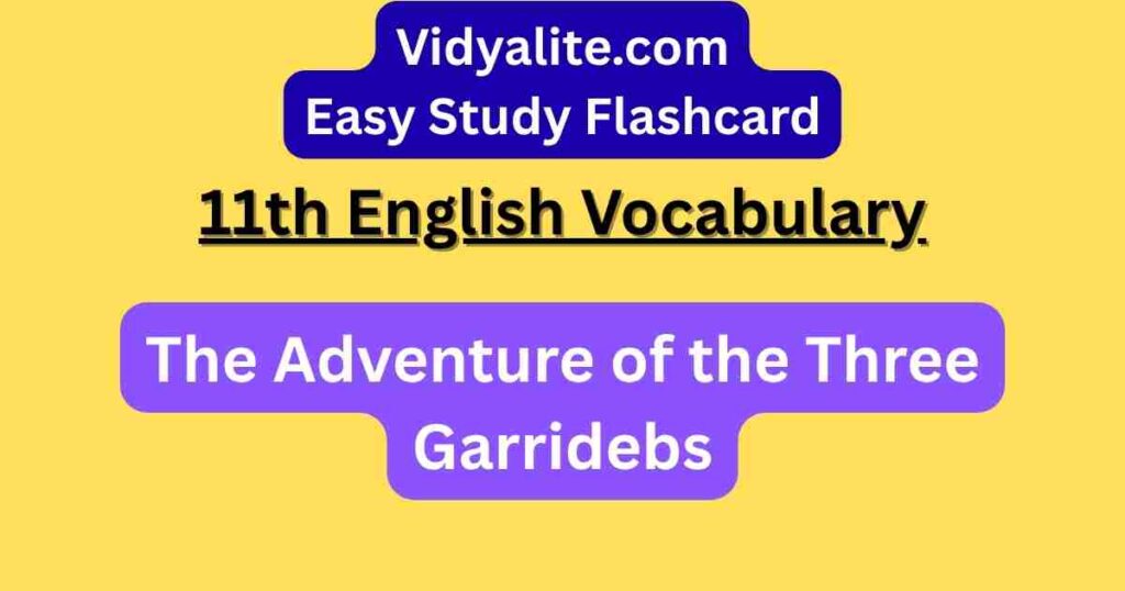 Learn key vocabulary from the detective story “The Adventure of the Three Garridebs” with our Class 11 Woven Words flashcards. Each word features a Hindi translation and contextual sentence to aid in understanding the language used in classic mystery writing.