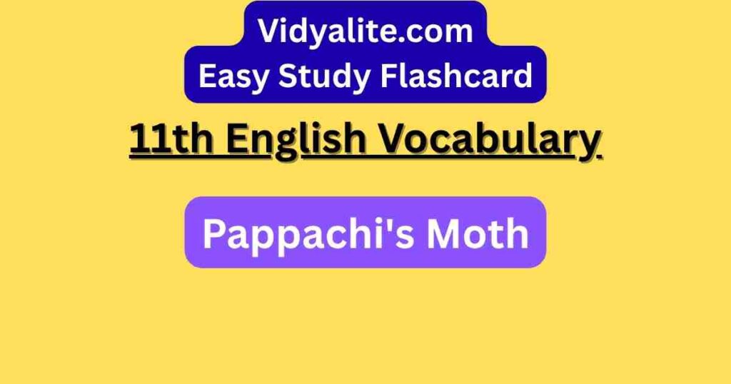 Master difficult words from “Pappachi’s Moth” in Class 11 Woven Words with our English-Hindi vocabulary flashcards. These include word meanings and sentences to help students connect language with emotions and cultural context, aiding deeper understanding.
