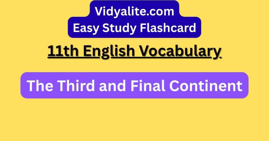 Strengthen your vocabulary for “The Third and Final Continent” in Class 11 Woven Words with our flashcards. Every word is translated into Hindi and used in a sentence, ideal for understanding cultural themes and improving exam readiness for Hindi medium students.