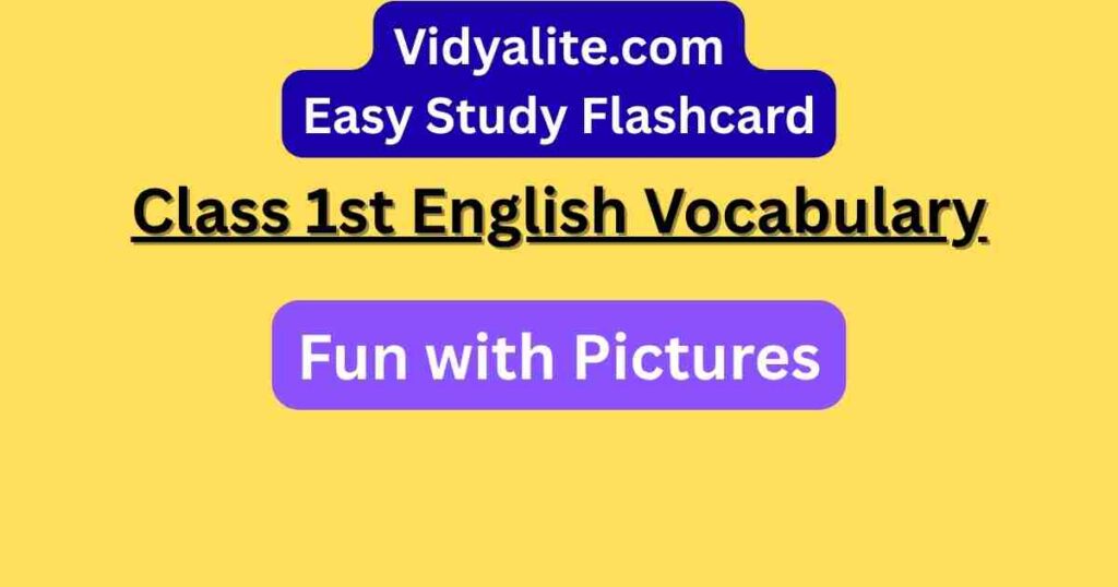 The NCERT Class 1 English chapter Fun with Pictures features 70 interactive vocabulary flashcards designed to help young learners build their English skills. Each flashcard presents a word with a clear picture, English to Hindi meaning, and an easy example, making it simple for children to recognize and remember everyday objects and actions. This chapter uses visual learning to make vocabulary engaging and memorable. The flashcards are ideal for daily revision, classroom activities, and self-study, supporting early language development and confidence in both English and Hindi.