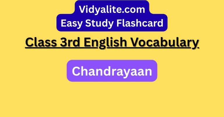 Study Chapter 12 Chandrayaan dictionary flash card Must Attempt Monthly Vocabulary Contest “Chandrayaan” is the title of Chapter 12 in the NCERT Class 3 English book. This chapter is all about India’s journey to the moon. It teaches children about space, science, and how dreams can come true. To help young learners understand the new … Continue reading NCERT Class 3rd English Vocabulary: Chapter 12 Chandrayaan dictionary flash card