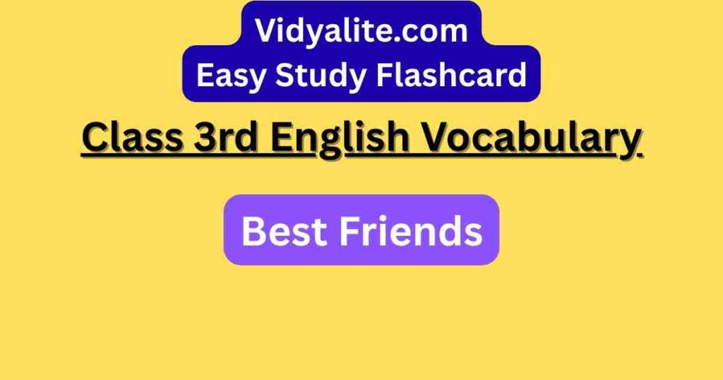 Boost your child’s English language skills with our meticulously crafted NCERT Class 3rd English Vocabulary Chapter 3 dictionary flashcards. Designed to facilitate easy learning, these flashcards focus on ‘Best Friends’, enabling students to grasp key vocabulary words effectively. Aligned with the NCERT curriculum, our study resources ensure a solid foundation for future academic success.