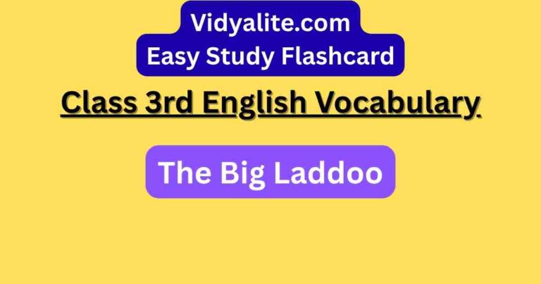 Study Chapter 7 The Big Laddoo dictionary flash card Must try Monthly Vocabulary Contest Chapter 7 of NCERT Class 3 English is called “The Big Laddoo.” It is a fun and sweet story with many useful words for kids to learn. To help children understand these words better, we have created special dictionary flash cards. … Continue reading NCERT Class 3rd English Vocabulary: Chapter 7 The Big Laddoo dictionary flash card