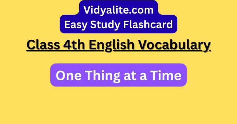 Chapter 4 One Thing at a Time flash card for self study Enhance your child’s English vocabulary with NCERT Class 4 Chapter 4 One Thing at a Time flash card for self study. Perfect for self-study and boosting language skills. 4th English Chapter Link for Vocabulary Learning Must Try Monthly Vocabulary Quiz Contest and check … Continue reading NCERT Class 4th English Vocabulary: Chapter 4 One Thing at a Time flash card for self study