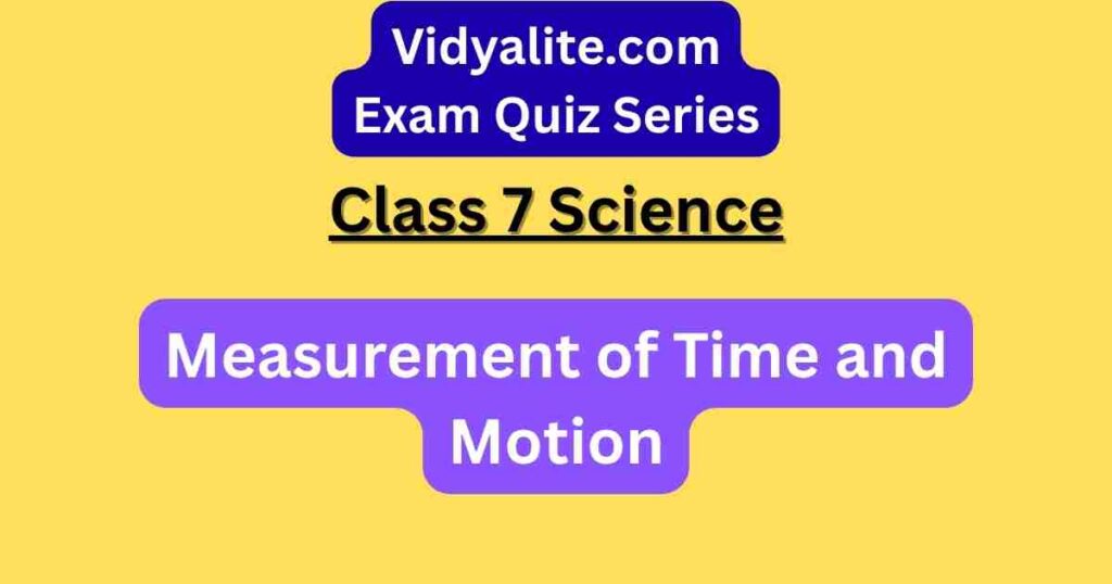 To prepare effectively for the Class 7 Science Chapter 8 – Measurement of Time and Motion MCQ test, read the NCERT Class 7 Science textbook carefully, focusing on units of time and motion, historical methods of measuring time, and the functioning of devices like sundials, pendulums, and modern clocks. Understand concepts such as speed, distance, and time calculations, and their applications in daily life. Revise using CBSE sample questions, Vidyalite’s Flashcards, and educational videos for visual clarity. Regular quiz practice will help you retain concepts and perform well in exams.